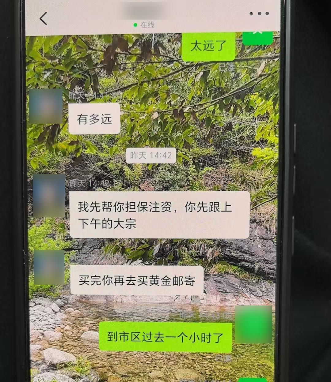 慈溪公安供图“为什么买金条,是不是遇到骗子了?”见到民警,男子先是一愣,随后开口解释,“黄金保值,买一些存着。”当民警追问购买黄金的资金来源时,男子支支吾吾地说:“是从网贷平台借的。”高息贷款买黄金?如此反常的举动引起民警的警觉。果不其然,民警在他的手机中发现,正在使用一个非官方的“炒股软件”和所谓的“理财客服”聊天。聊天记录里“担保”“邮递”等字眼频繁出现,对方要求购买10万元黄金作为保证金,并邮寄到指定地点完成股票投注。
