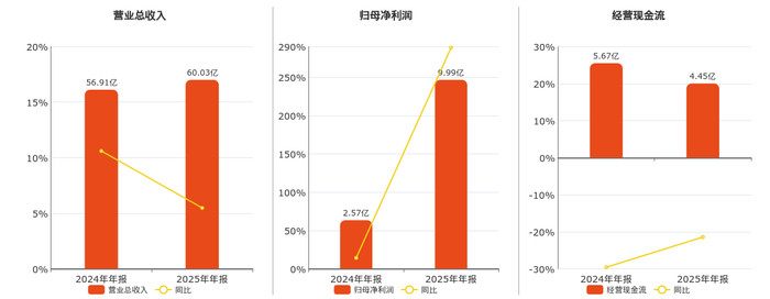 公司营业总收入为60.03亿元。归母净利润为9.99亿元。经营活动现金净流入为4.45亿元,较去年同报告期经营活动现金净流入减少1.33亿元,同比较去年同期下降23.00%。
