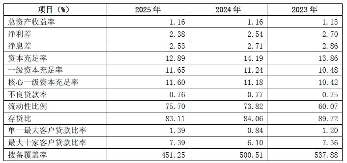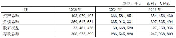 2025年末,公司总资产4030.79亿元,较年初增长9.96%;总存款3082.73亿元,较年初增长7.58%;总贷款2561.95亿元,较年初增长6.37%,其中,个人贷款占总贷款53.50%,单户授信1000万元及以下普惠型小微企业贷款余额1065亿元,贷款户数21.85万户,普惠小微特色鲜明。
