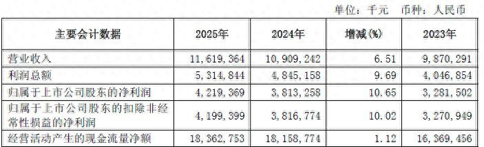 4月23日,常熟银行(601128.SH)发布2025年年度报告,报告期内,公司实现营业收入116.19亿元,同比增长6.51%;实现归属于上市公司股东的净利润42.19亿元,同比增长10.65%;总资产收益率1.16%,加权平均净资产收益率14.05%;成本收入比35.66%,同比下降0.96个百分点。